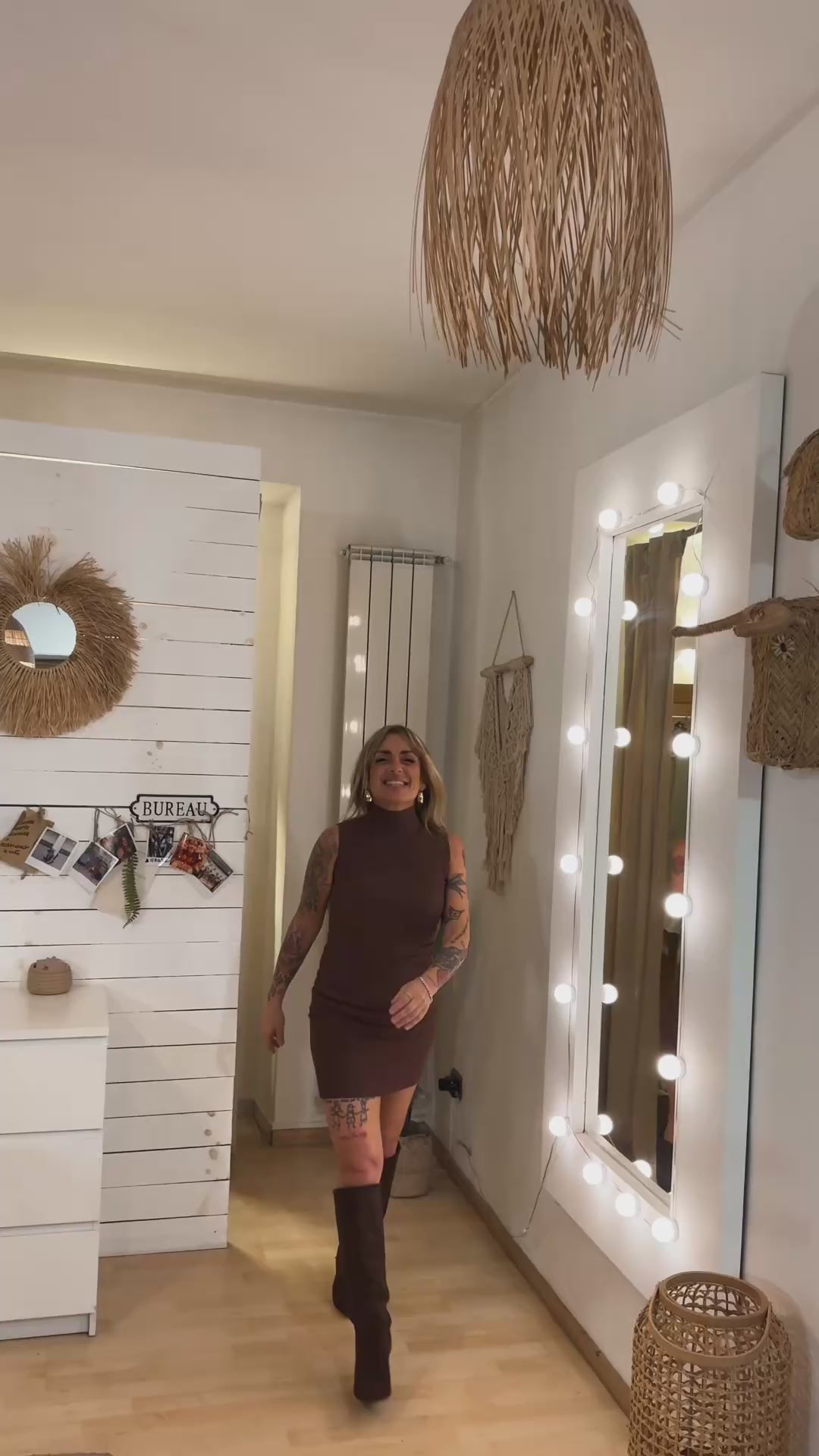 Un abitino che valorizza la silhouette con semplicità e carattere. Realizzato in morbido tessuto in viscosa al 65%, a coste elasticizzate, avvolge le forme in modo naturale, garantendo comfort e vestibilità impeccabile. Il collo leggermente alto aggiunge un tocco raffinato e contemporaneo, rendendolo ideale sia per il giorno che per la sera.
