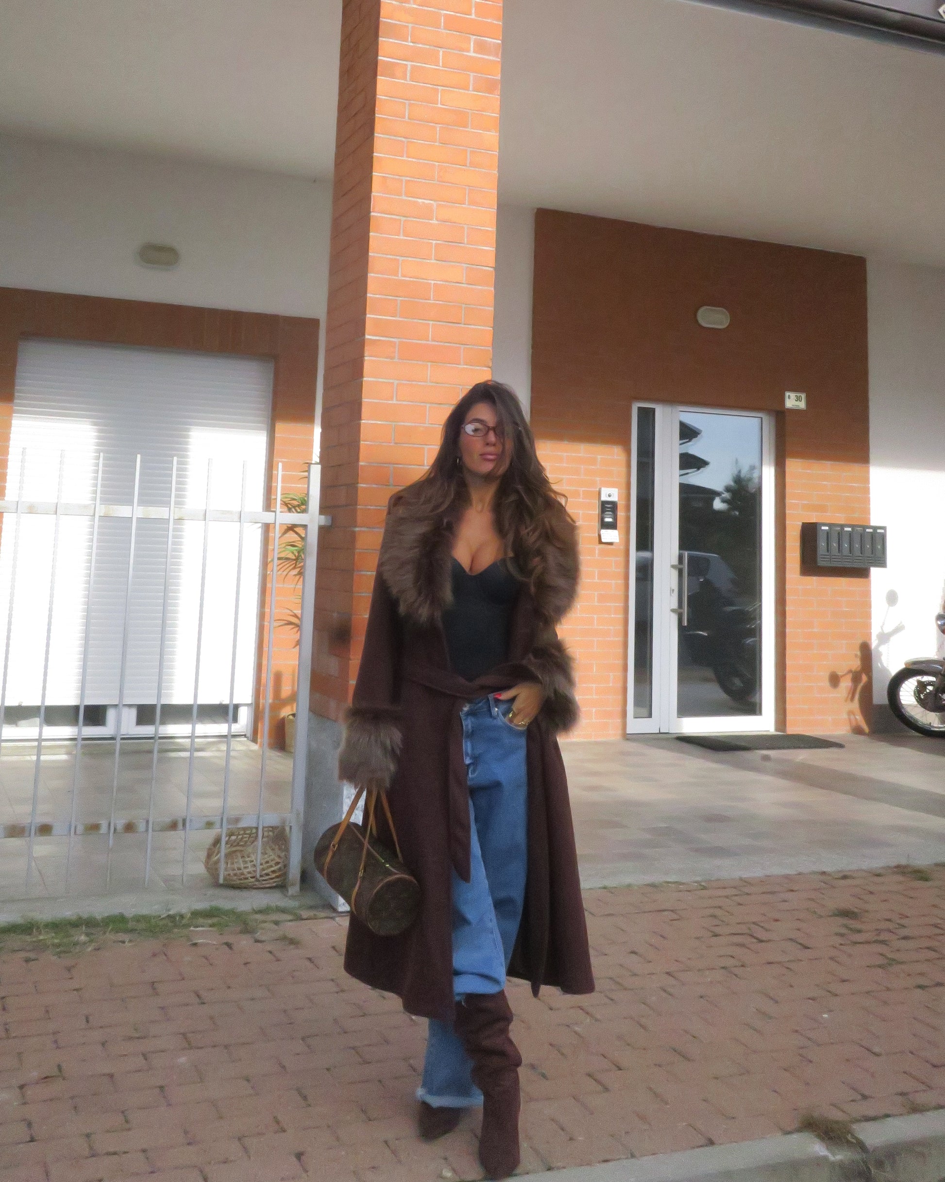 Il cappotto lungo Ofelia è l'ideale per l'inverno, grazie al suo collo di pelliccia (sintetica) che protegge dal freddo. Con il cinturino in vita, si adatta perfettamente alla figura e aggiunge un tocco di eleganza. Pratico e sofisticato, il cappotto è un must-have per ogni guardaroba invernale.