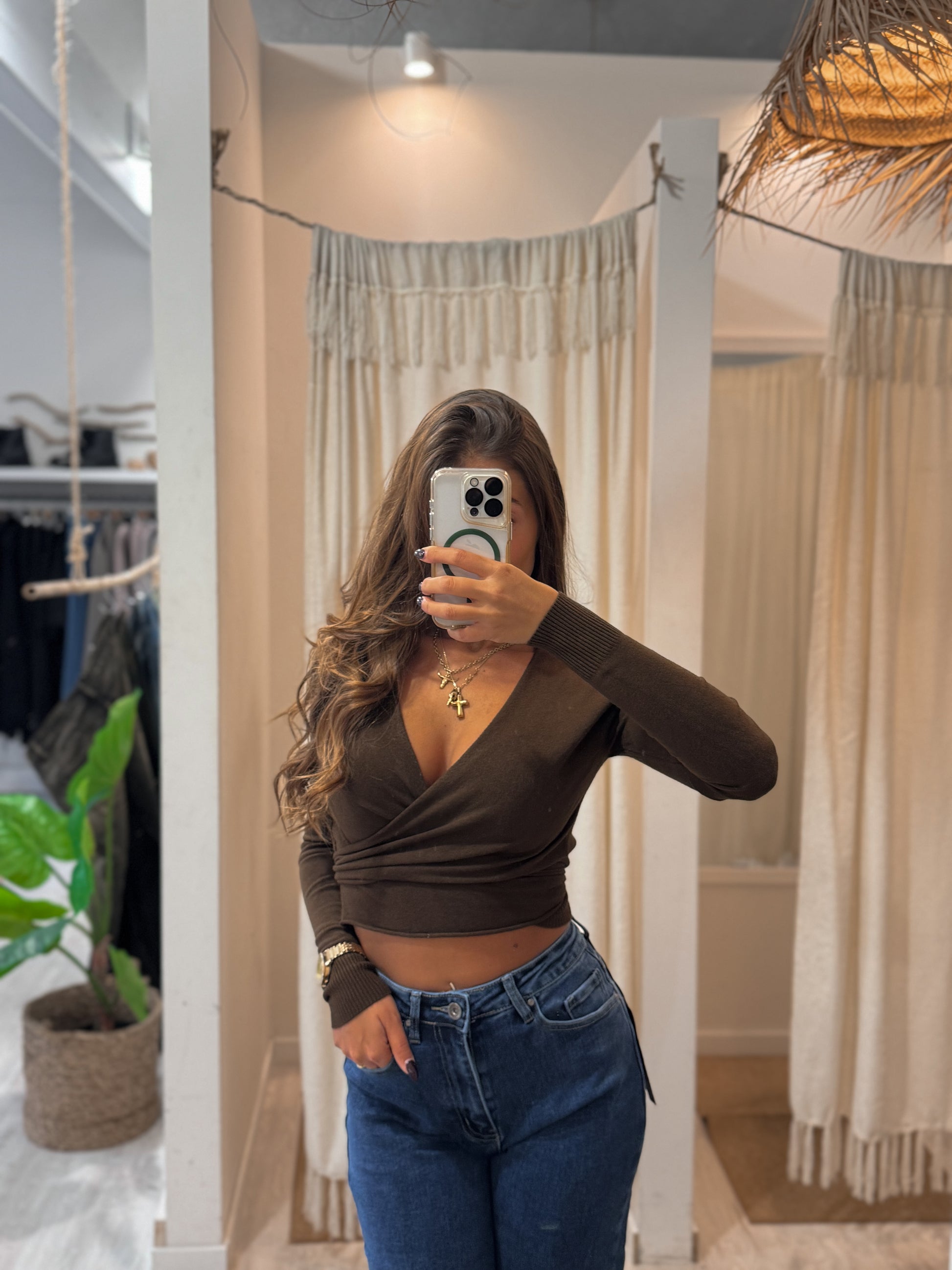 Golfinetto ad incrocio morbido corto in viscosa, aderente e confortevole. TAGLIA UNICA (dalla 38/XS alla 42/M)