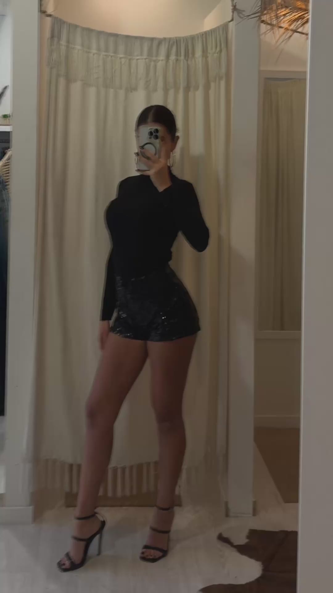 Brilla tutta la notte con i nostri shorts in paillettes, elasticizzati in vita abbinati alla maglia “vedo-non-vedo” ✨ Disponibili nel color nero o oro.